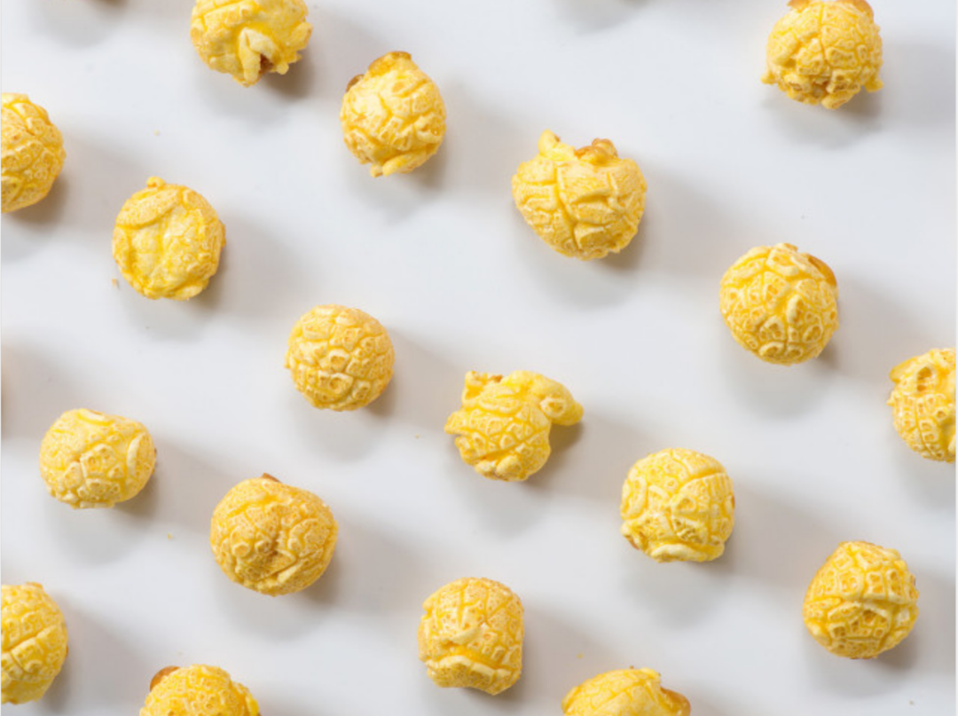 / 像蝴蝶翩翩起舞/玉米经过简单的加热后就会膨胀,形成的就是这种蝶形爆米花。